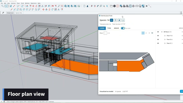 Vind automatisch ruimtes in een model en visualiseer deze met Space Finder.Deze functie is onderdeel van SketchUp Labs. SketchUp Labs is een openbaar...
